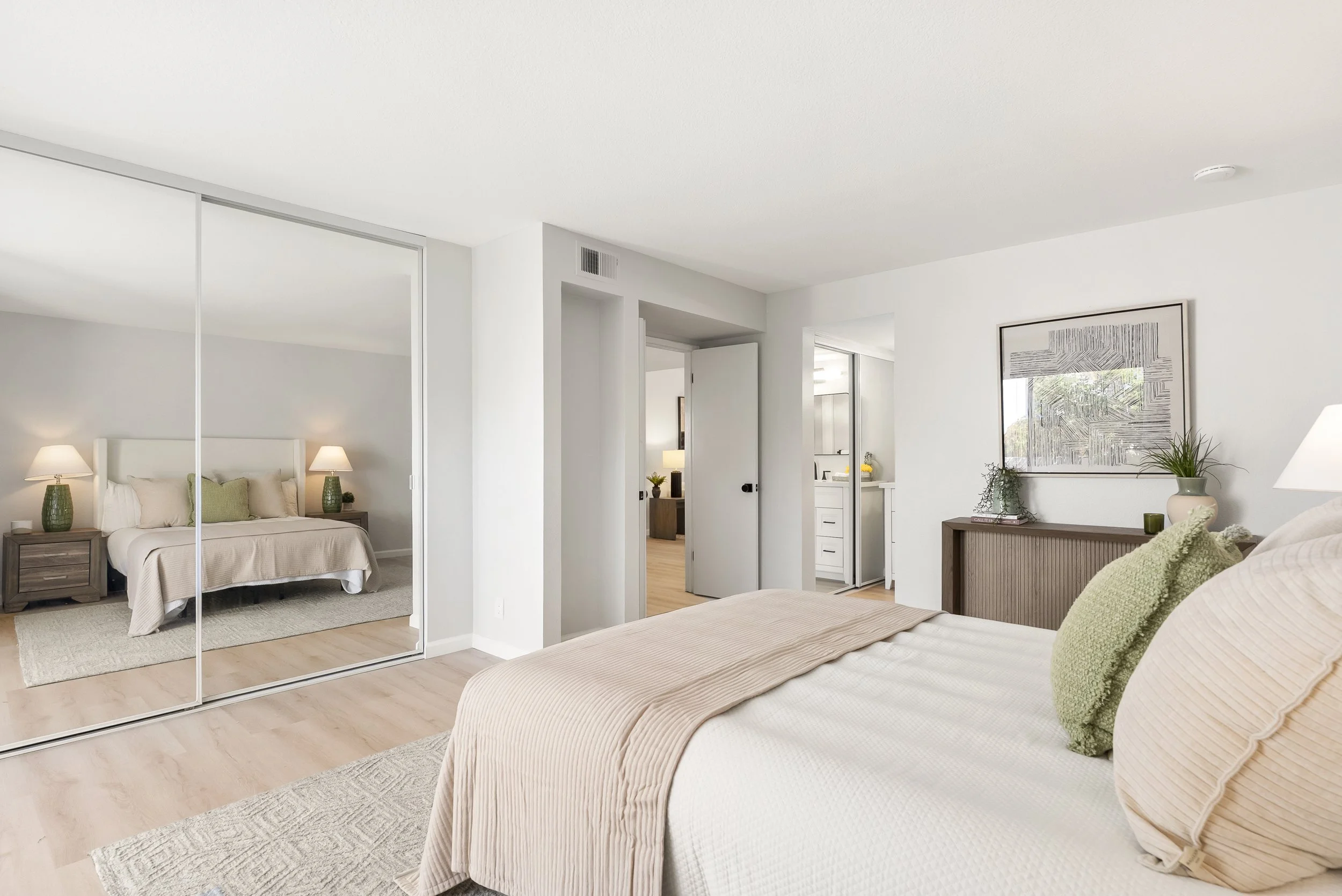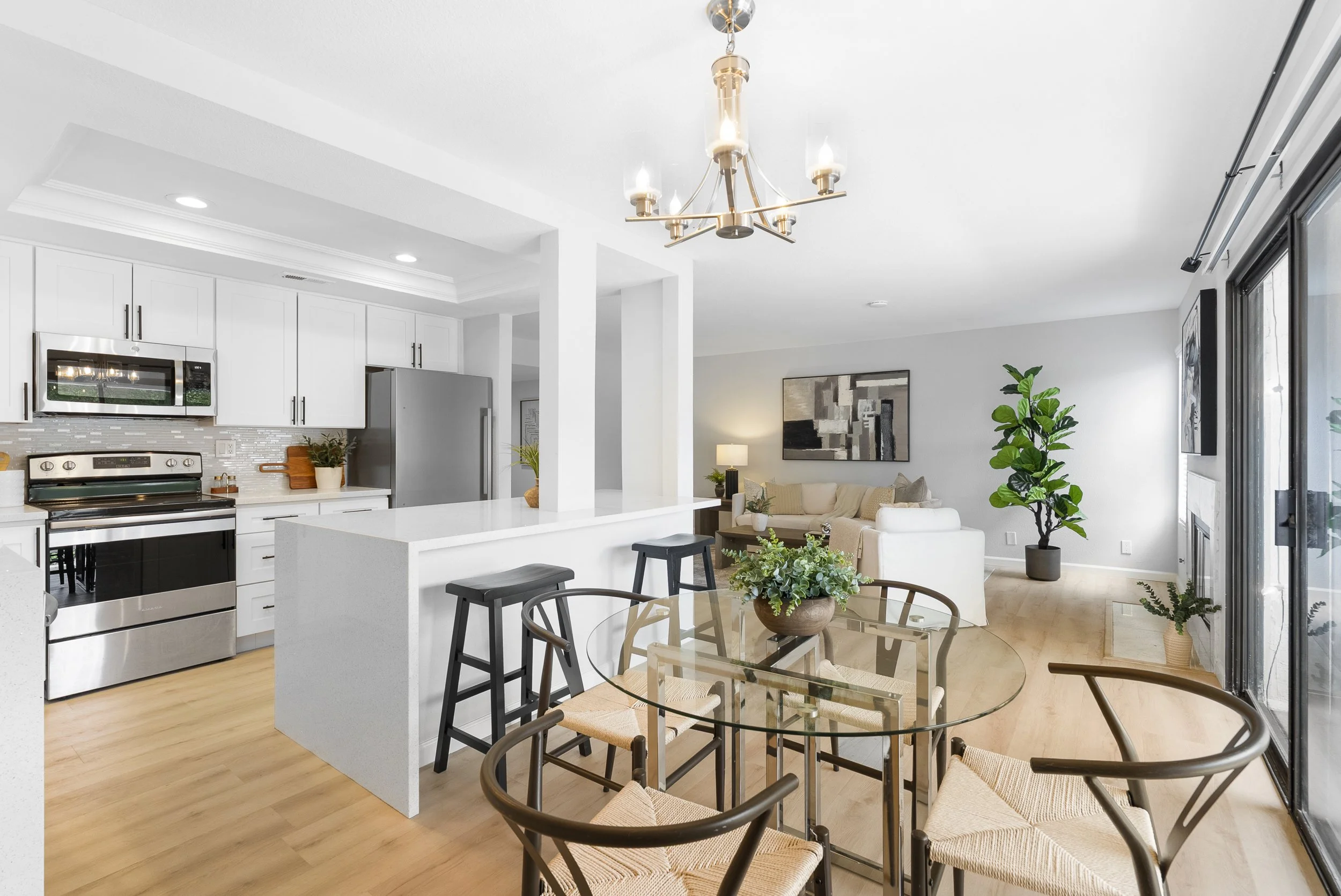Welcome to Triple Crown - one of Solana Beach's most sought-after communities, tucked quietly west of the I-5. This fully remodeled condo sits in a quiet, private location overlooking a lush greenbelt, offering a peaceful retreat. Inside, you’ll find a fully remodeled kitchen featuring quartz countertops, updated cabinetry, and stainless-steel appliances, while a cozy gas fireplace anchors the living space - perfect for those cool coastal evenings. The spacious primary suite opens directly onto a private patio and includes an ensuite bathroom with a walk-in shower, all-new fixtures, and an updated vanity. A second private patio gives you even more outdoor space to breathe. Practical details are just as polished: stacked in-unit washer/dryer and a private detached one-car garage. Step outside and you're minutes from the Del Mar Racetrack, the Cedros Design District, boutique shops, and some of the best dining the North County coast has to offer. And just a 3 minute car ride or a 20-minute stroll to Dog Beach. Whether you're walking the shoreline or grabbing a table at a favorite local spot, this location puts it all within reach without sacrificing the quiet, tucked-away feel that makes Triple Crown so special.